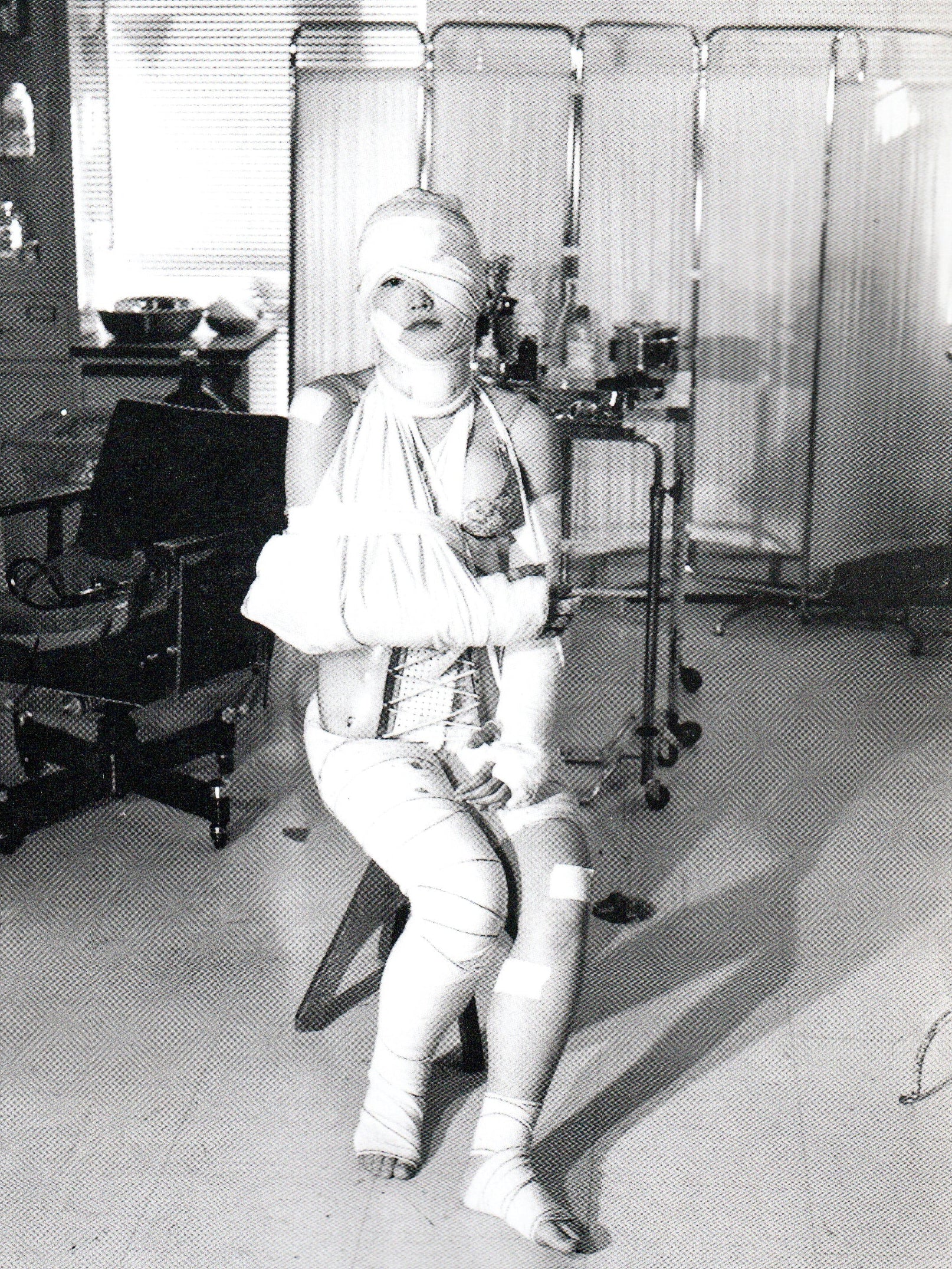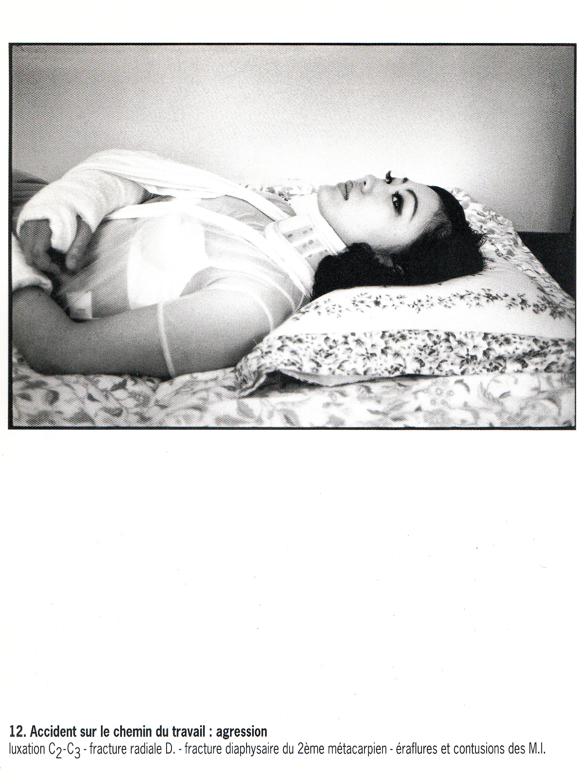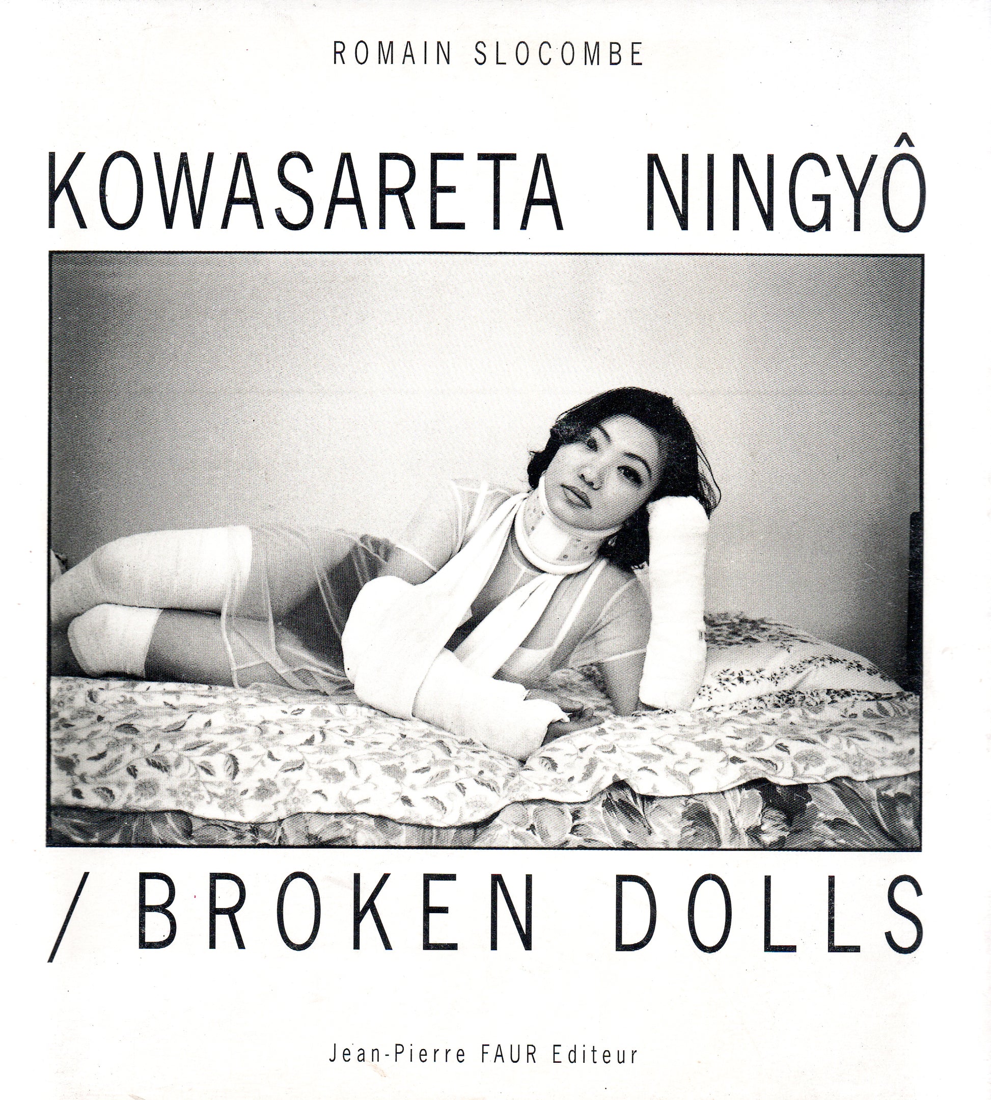 Nascido em Paris em 1953, Romain Slocombe é um artista que explorou diversos campos de expressão, como ilustração, escrita, fotografia. Amigo de Araki, desenvolveu grande parte de sua obra no Japão. Publicado nos anos 1990, Broken Dolls reúne dezenas de fotografias em preto-e-branco feitas em Tóquio. Nas imagens, mulheres japonesas aparecem envoltas em gesso, bandagens e imobilizações médicas, encenando uma estética de fragilidade e fetichismo. Misturando erotismo, cultura pop e referências hospitalares, Romain cria um diário visual sobre vulnerabilidade e desejo.