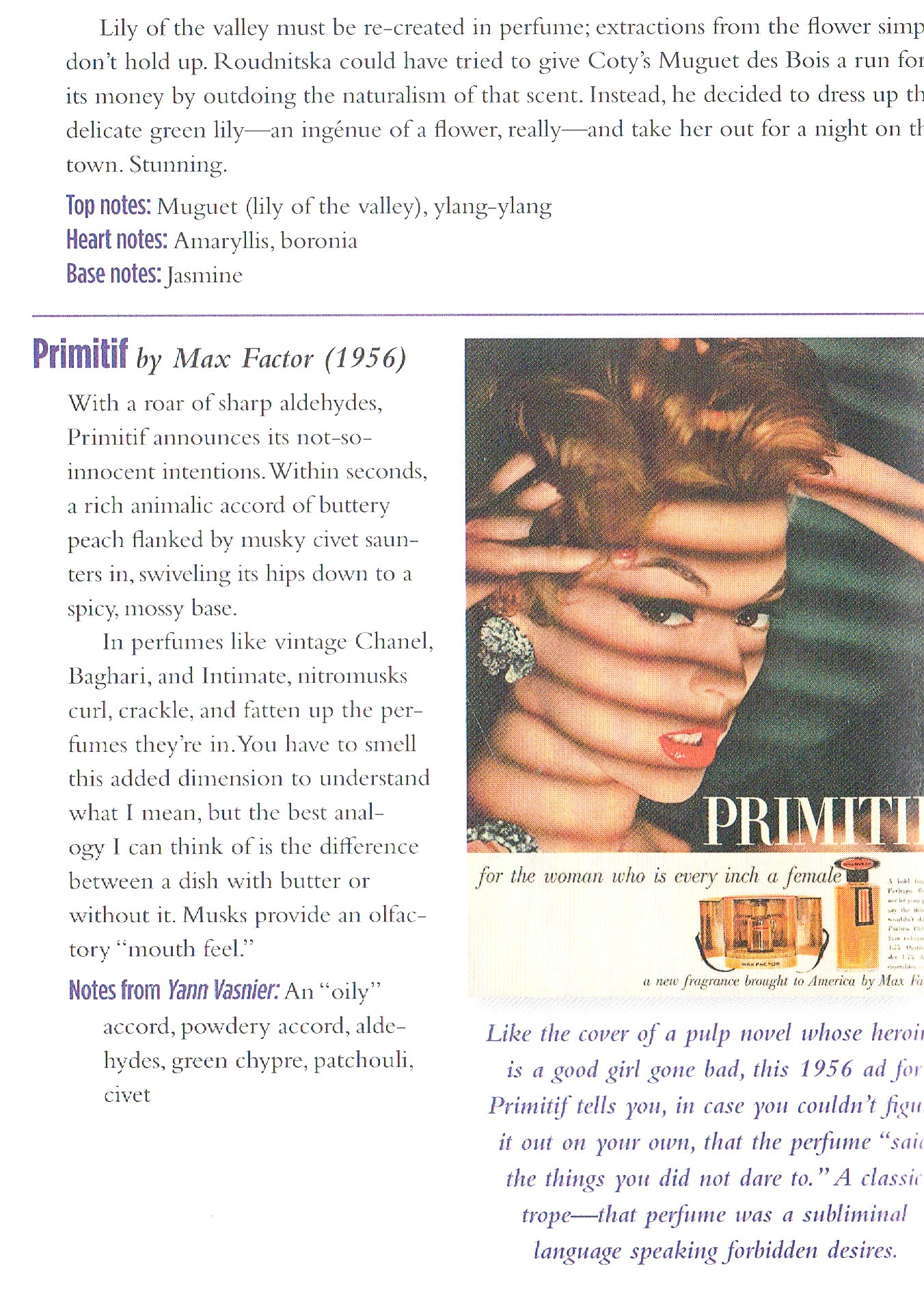 Barbara Herman divide sua análise irreverente, poética e muitas vezes bem-humorada de perfumes vintage e anúncios de perfumes. O livro apresenta descrições de mais de 300 perfumes, começando com Fougère Royale (1882) e terminando com Demeter's Laundromat (2000).